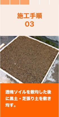 この透塊ソイル層は透水性・保水性があるので植物の成長を阻害することがなく、その主成分が天然素材であるため植物との相性が良い事が最大の特徴です。更に透塊ソイルが強固な層を形成することにより、外から飛来した雑草の種子の発芽、下からの雑草の突き上げを防ぐ事が出来ます。